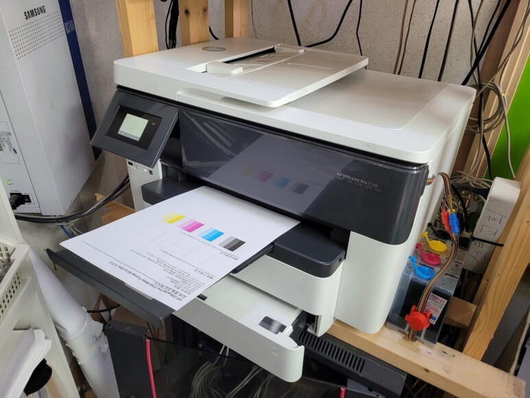HP 7740 무한잉크 카트리지 문제로 멈춰 있었습니다.