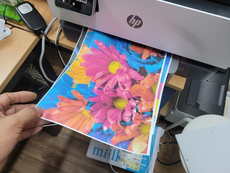 서울 강남구 신사동 소재, 사무실에서 사용하는 HP 9010 팩스복합기 무한잉크인데 마젠타 빨강색 출력상태가 좋지 않아 출장수리 요청, 스케줄 잡아 이동 출장수리 완료했습니다.
