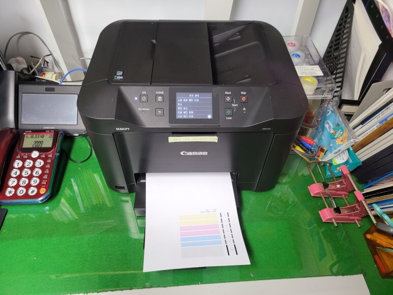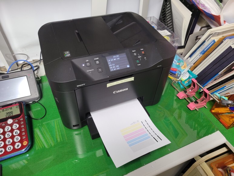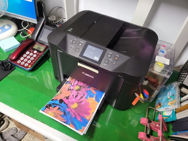 서울시 성북구 소재 아파트 관리사무실에서 사용하는 캐논 맥시파이 MB5120 팩스복합기 무한잉크인테 호스 내부 끊어져 잉크가 전혀 공급이 안되는 상태로 출장수리 요청하여 케이블 재정리 및 출장수리 완료했습니다.