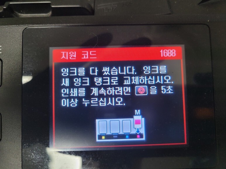 캐논 맥시파이 MB5120 팩스복합기, 지원코드 1688 문제로 멈춰 있었습니다.