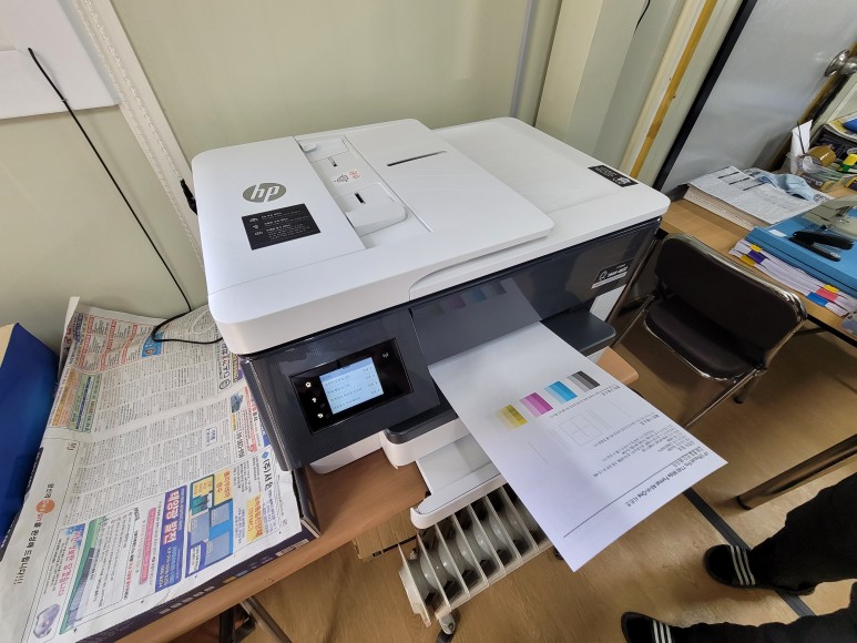 아파트 건설현장 사무실에 HP 7740 무한잉크 A4 A3 팩스복합기, 칩없이 구동하는 Chipless solution 임대설치했습니다. 1년 약정, 무제한 출력, CMS 자동계좌이체 계약 설치완료 했습니다.