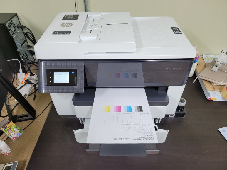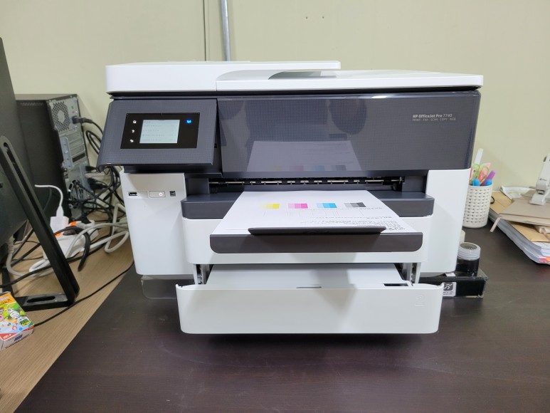 고양시 덕양구 지축 건설현장 사무실에 HP 7740 무한잉크 A4 A3 팩스복합기, 칩없이 구동하는 Chipless solution 임대설치했습니다. 1년 약정, 무제한 출력, CMS 자동계좌이체 계약 설치완료 했습니다.