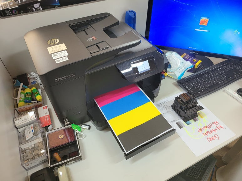 [서울대 무한잉크 출장수리] HP OfficeJet Pro 8710 팩스복합기 무한잉크 프린트헤드 격벽 크랙으로 인한 혼색, 신규 헤드 교체