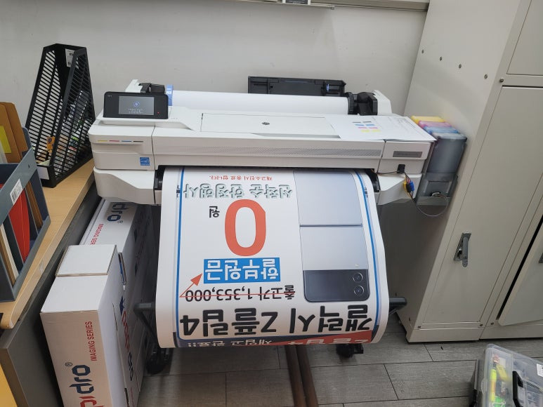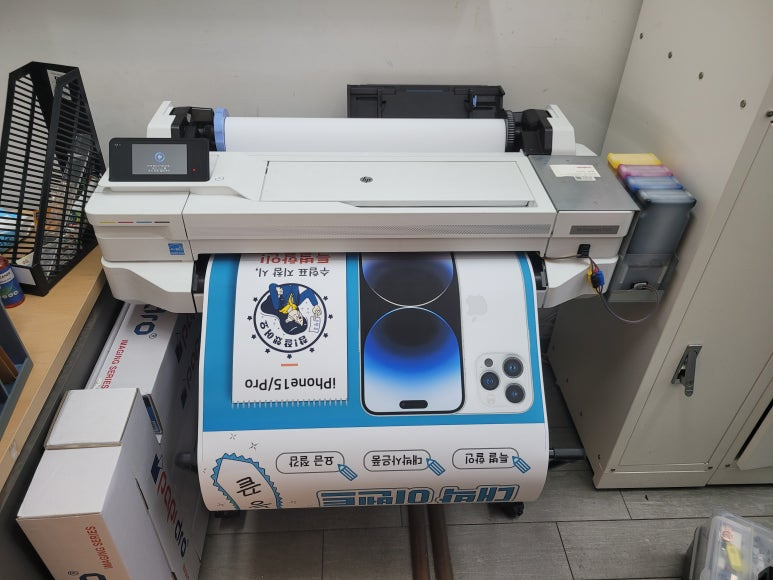 스마트폰, 모바일 대리점에 1년 약정, 무제한 출력, CMS 카드 자동결재 계약으로 HP T525 24인치 A1 플로터로 ALL 안료잉크로 무한잉크 세팅해서 플로터 무한잉크 임대 설치했습니다.