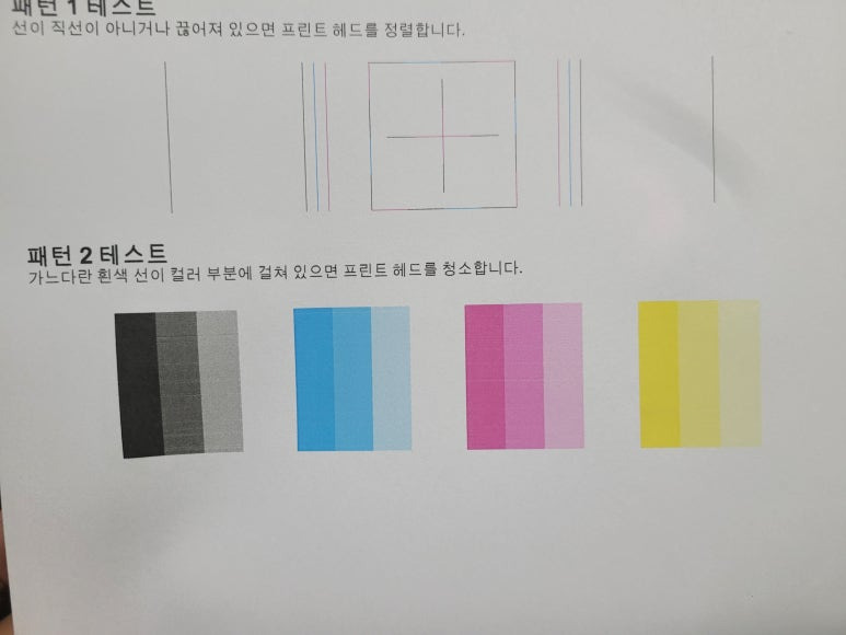⚠ 이상 시에만, 액정에서 설정 ➡ 유지 및 보수 ➡ 헤드청소 3단계 1회만 진행 (개선없다면 수리요청)