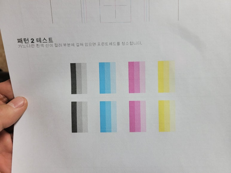 ⚠ 이상 시에만, 액정에서 설정 ➡ 유지 및 보수 ➡ 헤드청소 3단계 1회만 진행 (개선없다면 수리요청)